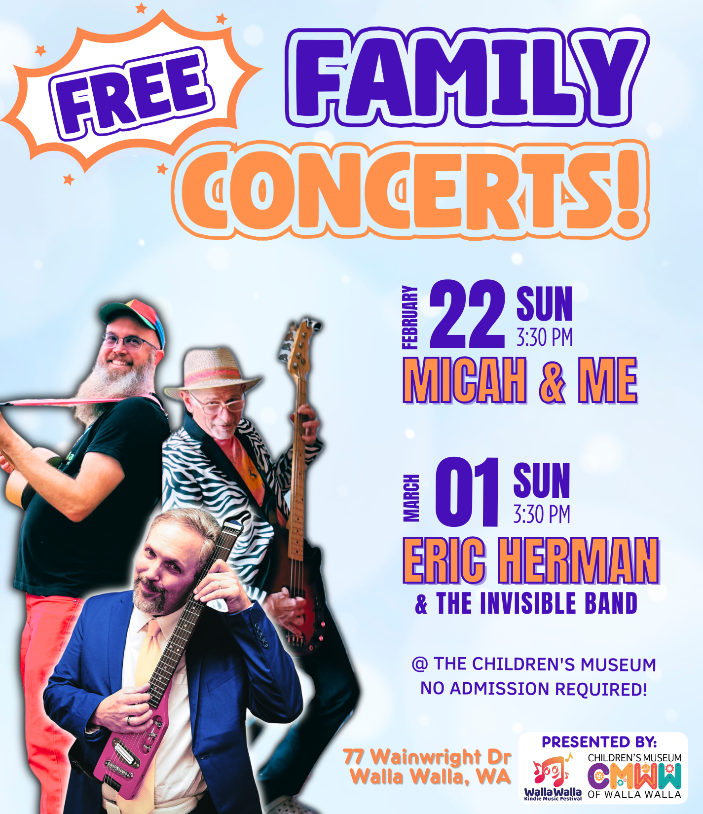 Acompáñanos para un concierto en vivo totalmente GRATUITO con Eric Herman & the Invisible Band, ¡una banda familiar favorita conocida por sus canciones divertidas y llenas de energía que encantan a niños y adultos por igual!