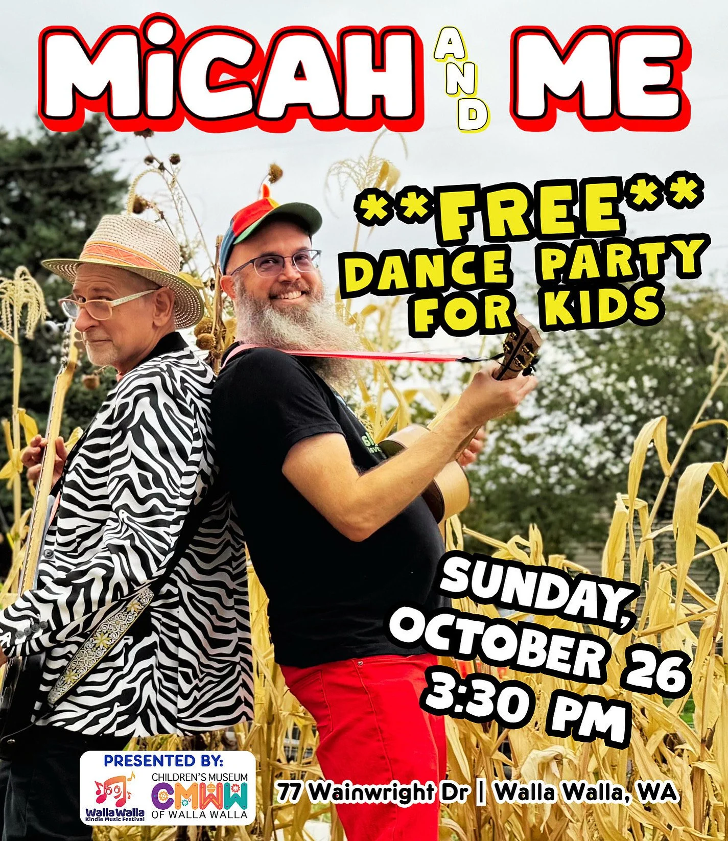 Free DANCE PARTY for ages 3-10! Join Micah and Me, a veteran children’s entertainer, as they get everyone up dancing! Great for kids and the young-at-heart.